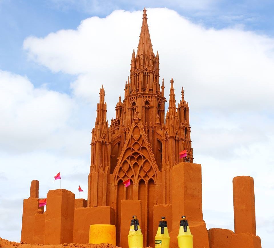 Tượng cát được điêu khắc từ 100% cát tự nhiên, không pha trộn phụ gia và chỉ nhờ sự nén chặt của cát và nước.