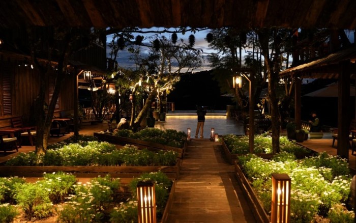 Nếu như bạn có dịp đến với quán và lúc ban đêm. Lúc những nhà lồng, nhà vòm ở phía dưới thung lũng đã lên đèn. Chắc chắn bạn sẽ có được cho mình những cảm nhận cũng như những trải nghiệm tuyệt vời nơi đây. Một khung cảnh được ví như là kinh đô ánh sáng tại Đà Lạt. Với những ánh đèn lung linh và huyền ảo càng làm cho không gian nơi đây trở nên thơ mộng và lãng mạn nhất.
