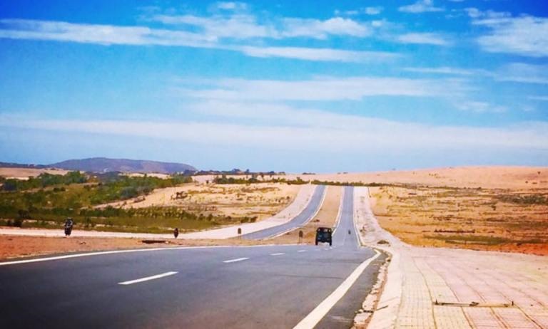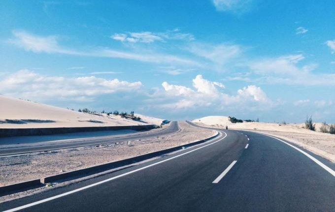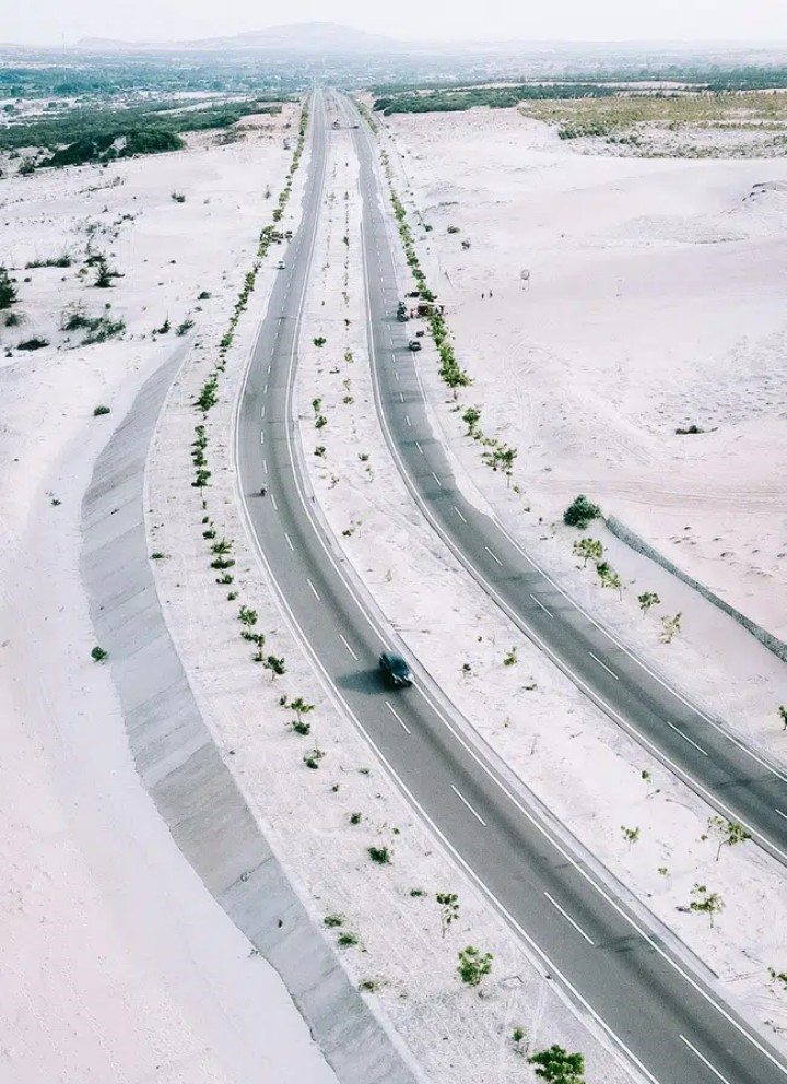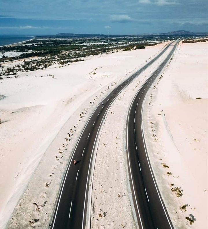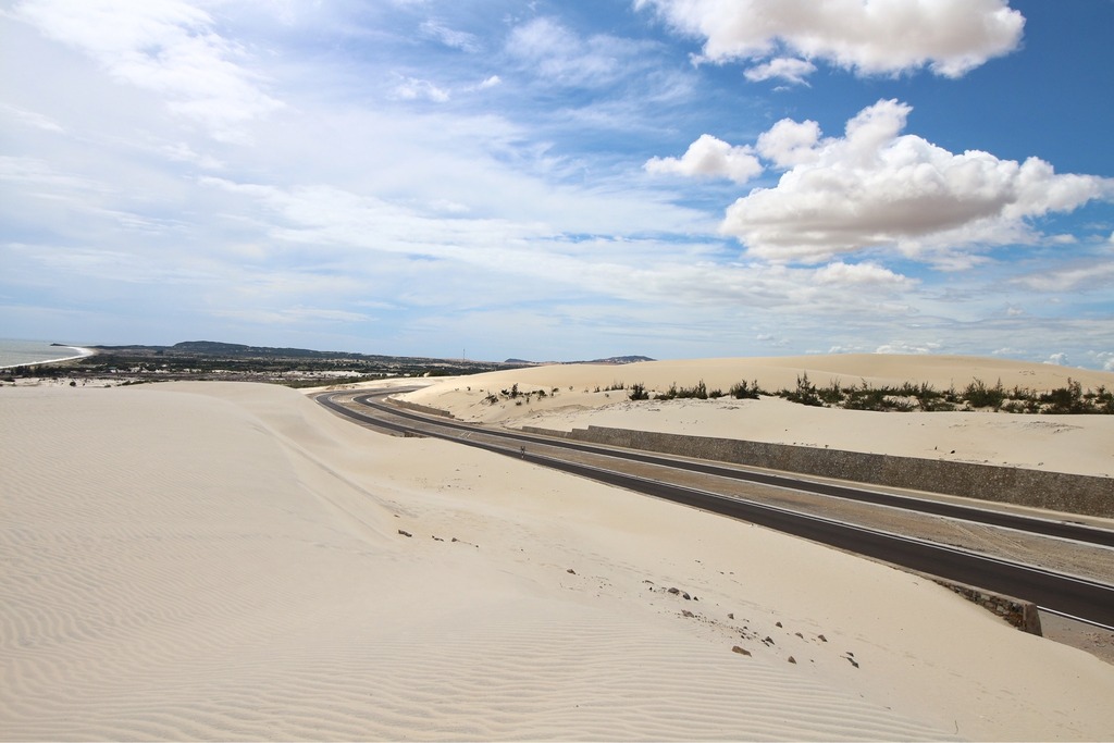 Những con đường ở hành trình này đa phần là thẳng tắp như kéo dài nhưng thi thoảng có nhiều chỗ hơi quanh co và ôm lấy những đồi cát trắng tinh rất đẹp, thậm chí có những đoạn đẹp đến mức người ta ví y như cảnh chỉ có trong phim.