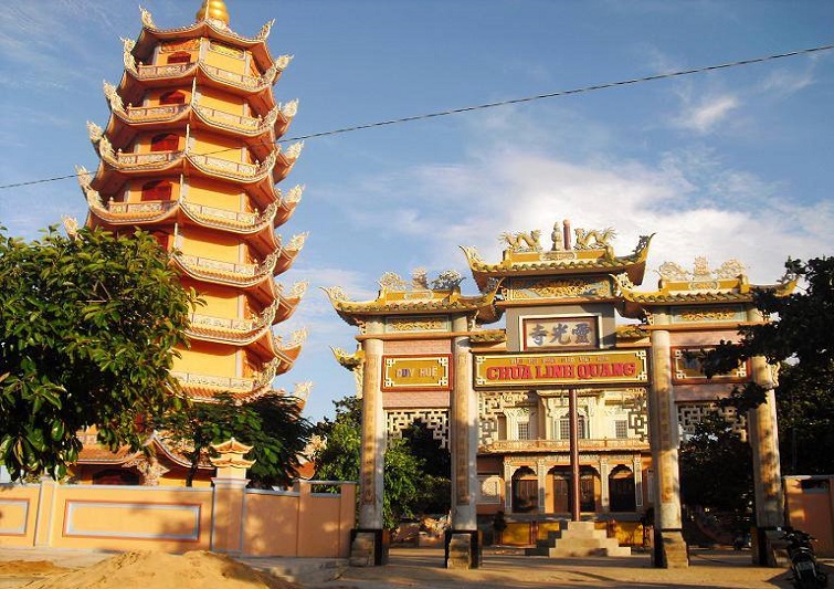 Chùa Linh Quang trên đảo Phú Quý, Bình Thuận là ngôi chùa vừa được nhà nước công nhận là di tích lịch sử là chùa tháp cao nhất Việt Nam.