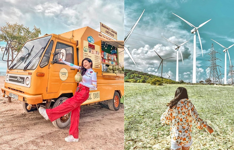 Bạn sẽ không được đi thẳng vào trong mà chỉ được đứng ngoài, đúng hơn là để chụp được đẹp và thấy được nhiều quạt gió nhất là tia góc tại quốc lộ 1A. Đi tạt vô lề rồi chạy xuống nháy 1 kiểu nhé