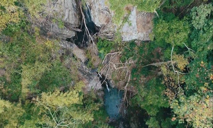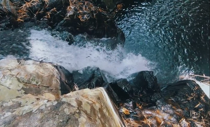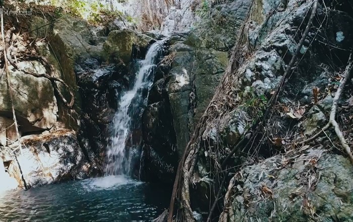 Thác Bà La Vung ở Mỹ Thạnh, nước đổ ra từ khe đá trong vắt