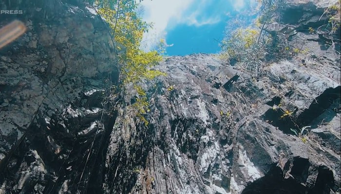 Vách núi đá trong khu thác bảy tầng cảnh đẹp như phm cổ trang