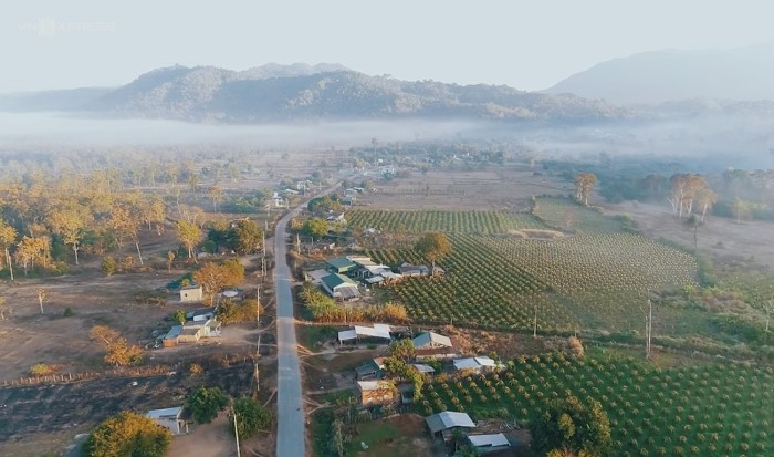 Tiếp tục đi trên con đường nhựa xuyên qua cánh rừng mát mẻ như đang đi trên một trong những cung đường ở Hàn Quốc. Tuyến đường này khá thuận lợi cho các phương tiện di chuyển. Khi đến thôn 3, xã Hàm Cần, bạn sẽ thấy những căn nhà vách tre đơn sơ, trên đường có những phụ nữ dân tộc Rai địa phương mang gùi lên rẫy. Cuối làng, cánh rừng xanh ngát dần hiện ra trước mắt.