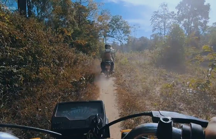 Kề bên Trạm bảo vệ rừng Mỹ Thạnh có một con đường đất, chính là nơi du khách có thể xuất phát vào rừng bằng xe máy khám phá ngọn thác bí ẩn trên quãng đường khoảng hơn chục km. Hai bên đường, cây rừng thẳng tắp, các thảm tre nứa che bóng mát với tiếng chim rừng hót véo von.