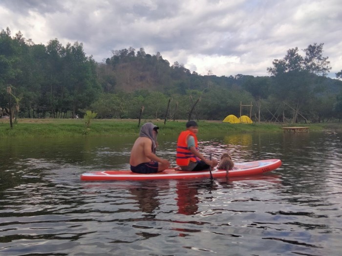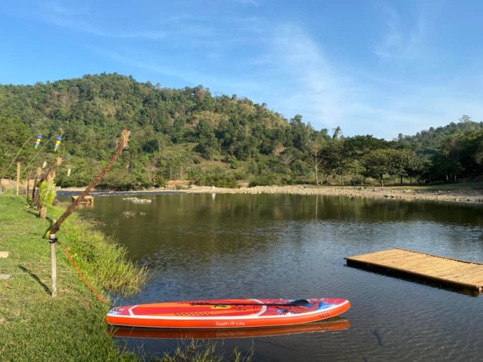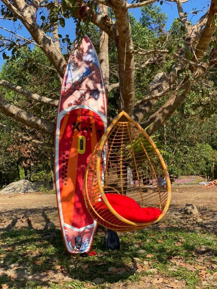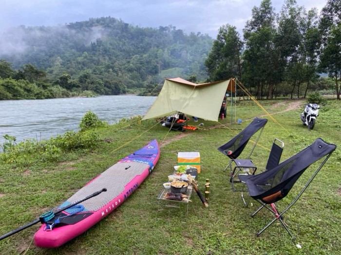 Điểm camping Vườn Hoa La Ngâu có cho thuê lều cắm trại qua đêm, để vui chơi chụp ảnh sống ảo bạn có thể thuê thuyền Kayak, SUP hơi để chèo trên dòng suối đá La Ngâu trong mát.