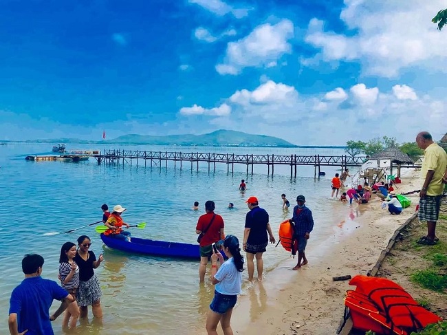 Ngoài tắm biển vui đùa cùng làn nước trong xanh mát rượi, bạn còn được bạn còn có thể trải nghiệm những dịch vụ thú vị như: du ngoạn bằng thuyền buồm, cano, tham quan làng nghề làm muối, làng nghề nuôi hàu, lặn biển ngắm san hô,...Và tất nhiên phải thưởng thức ăn hải sản độc đáo tại đây như: tôm, mực, cá đặc biệt là món hàu nướng ngon hết xẩy.