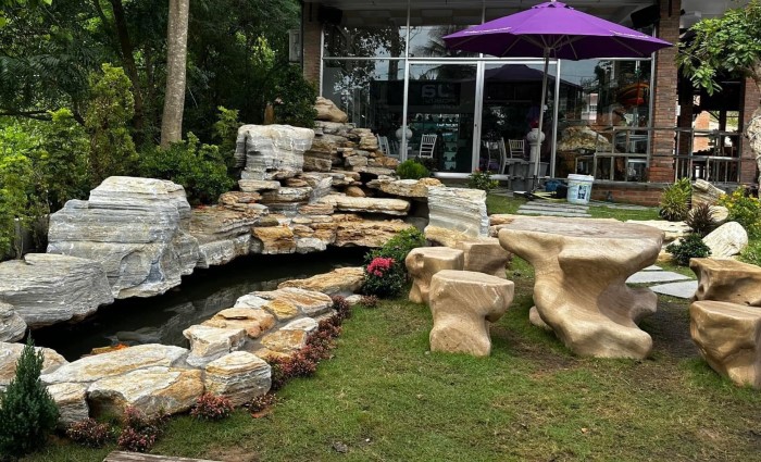 Ẩm Thực Làng Chài Xưa là nhà hàng hải sản tươi sống gần biển, sân vườn đẹp, rộng rãi thoáng mát và có những góc rất chill cho quý khách ngắm cá Koi, thưởng thức cafe, ăn sáng khi du lịch ở biển Tiến Tiến Thành.
