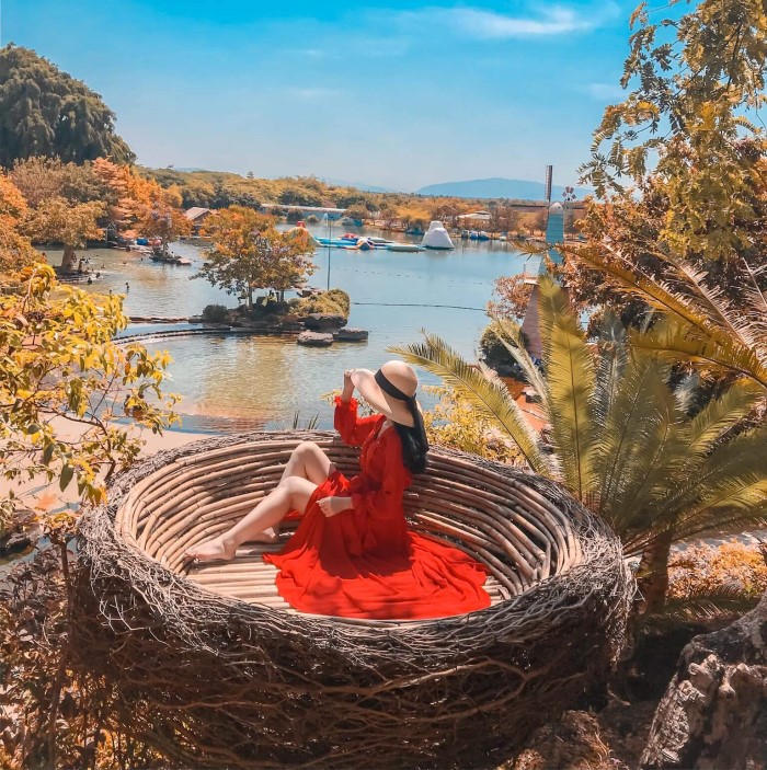 Khu Sơn Nữ sẽ là địa điểm tham quan, check in lý tưởng dành cho các bạn trẻ. Tại đây có nhiều công trình để chụp hình đẹp sống ảo như Cổng trời Bali, xích đu tiên, Hồ Long Ẩn,..Hoặc tham quan đảo Lan, tại đây có rất nhiều hoa phong lan đẹp khiến không khí trở nên thoải mái hơn.