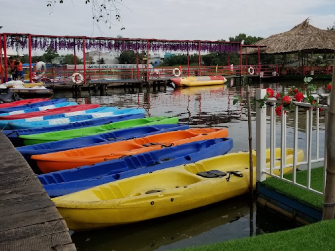Muốn khám phá nhanh về miền sông nước Nam Bộ thì nhất định không thể bỏ lỡ Làng du lịch Tre Việt. Khu du lịch nổi bật với những hàng dừa thẳng tắp chạy dài, những rặng tre rợp bóng và xung quanh là sông nước bao phủ. Làng du lịch Tre Việt là một địa điểm mang đến không khí trong lành, phong cảnh gần gũi cho khách tham quan.
