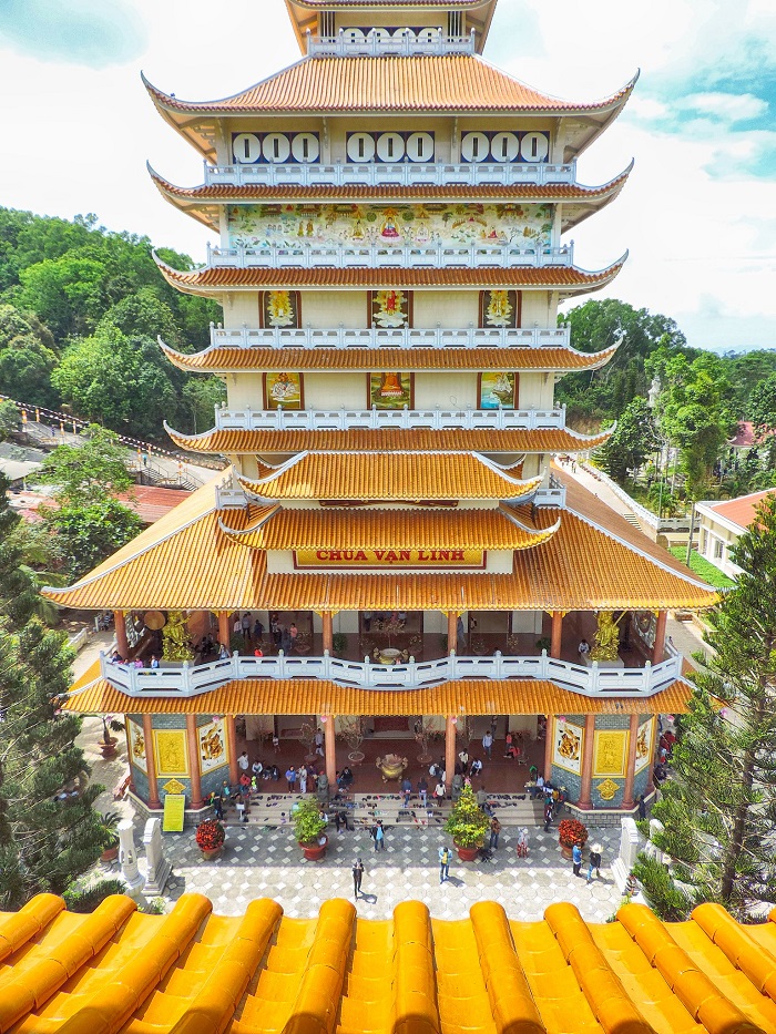Chùa Vạn Linh còn có tên gọi khác là chùa Lá được Hòa thượng Thích Thiện Quang khai sơn năm 1927, ban đầu được dựng đơn sơ chỉ là một ngôi tự bằng tranh. Năm 1995, chùa được thiết kế, xây mới theo lối kiến trúc cổ truyền phương Đông, nổi bật nhất là ba ngọn tháp uy nghi, trầm mặc, được đặt tại ba vị trí khác nhau ở phía trước tiền đường, đó là: tháp Quan Âm 9 tầng cao hơn 35m (ở chính giữa), tháp Hoà thượng khai sơn Thích Thiện Hạ Quang 3 tầng (ở bên phải) và tháp chuông 9 tầng với quả đại Hồng chung nặng 1,2 tấn (ở bên trái).