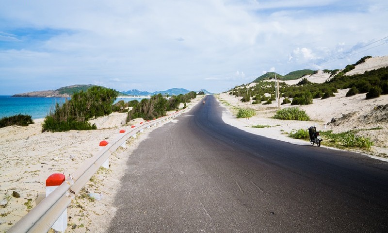 Tiếp tục hành trình theo cung đường DT716 đến Bàu Trắng, từ đây rẽ phải để tránh quốc lộ 1A và đi con đường ôm sát biển đến cầu Sông Lũy ở Phan Rí Cửa.