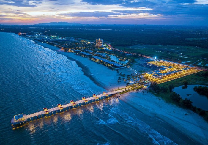 Phố thương mại - dịch vụ Hamptons Plaza tọa lạc ngay bãi biển có diện tích hơn 5ha đang trở thành điểm đến mới tại Hồ Tràm với hơn 40 nhà hàng cao cấp, 20 cửa hàng mua sắm, trung tâm giải trí cho trẻ em, quán bar, khu vực tổ chức sự kiện, các tiện ích cao cấp như khu sạc xe hơi điện của Porsche (Đức).