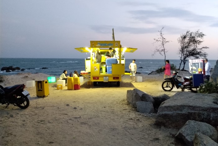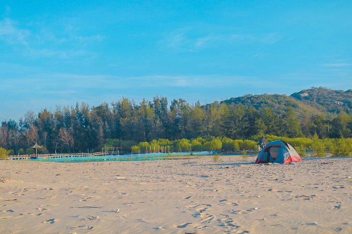 Nếu bạn nào có sở thích cắm trại thì có thể ghé thăm khu Camping Rừng và Biển cách đó không xa để thuê lều. Hãy tưởng tượng cảm giác cùng nhóm bạn thân qua đêm bên cánh rừng cạnh hồ nước lớn ven biển, rồi dậy sớm đón bình minh vừa ló dạng mấp mé giữa biển khơi và cùng nhau dạo biển. Thú vị hơn là bạn có thể mua hải sản tươi của những người dân chài lưới vừa mới bắt lên để nướng.