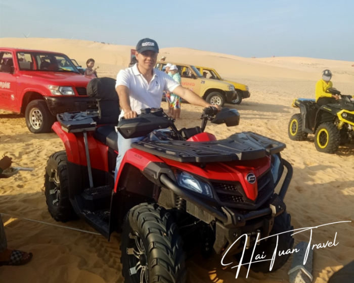 Giá thuê xe địa hình ATV 4 bánh tại đồi cát Mũi Né từ 700.000đ cho 20 phút và 900.000đ cho 30 phút khách tự lái.