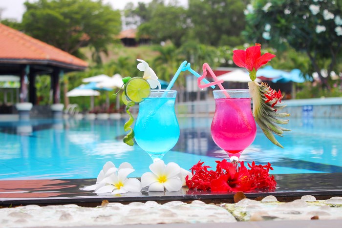 - Ôn tuyền thủy liệu pháp, hồ bơi, thác nước, Jacuzzi, đài phun nước, ghế nằm, dù che, nước uống