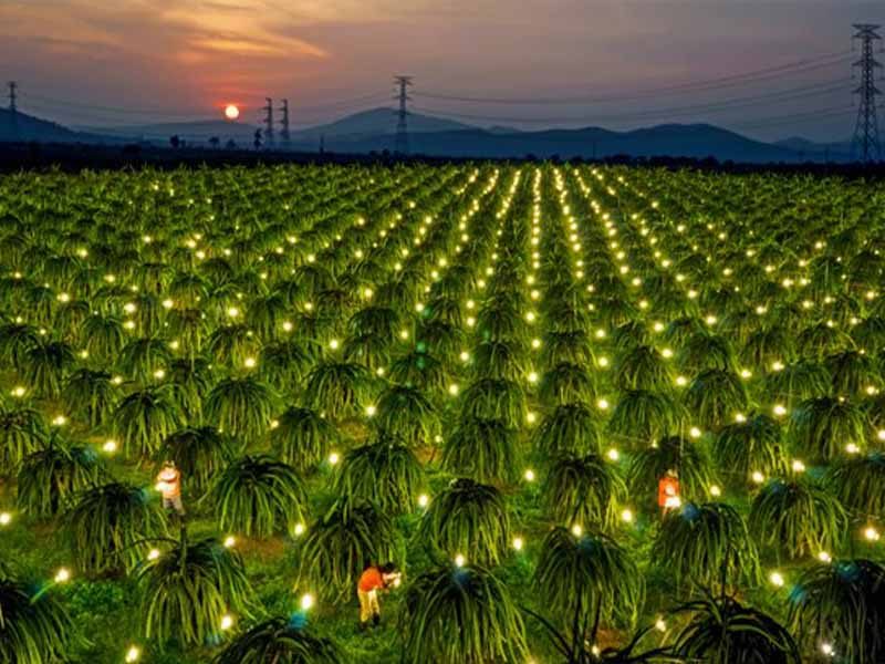 Khi màn đêm buông xuống, những ánh đèn được bật lên để tạo ánh sáng và độ ấm cho thanh long ra hoa, khi đấy khắp trai trại thanh long Bình Thuận như bầu trời đêm đầy những ánh sao lấp lánh đẹp mê mẩn.