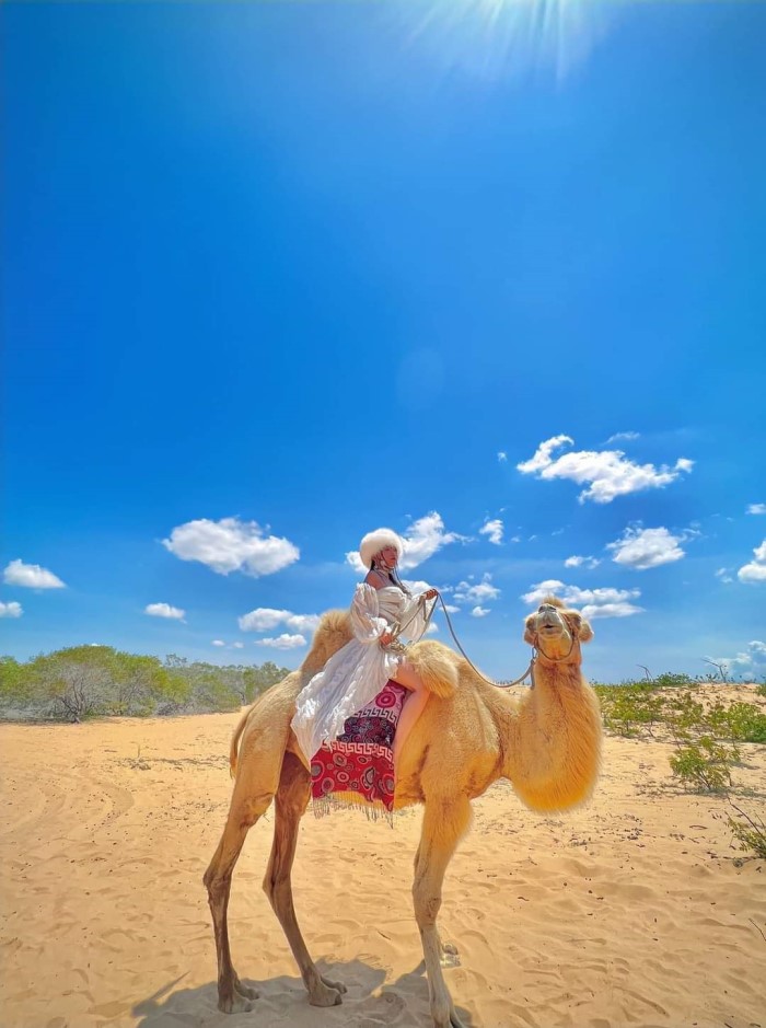 At Mui Ne white sand dunes, you can save beautiful photos next to cute camels! Taking pictures with camels in the white sand dunes will be the girls’ favorite experience.