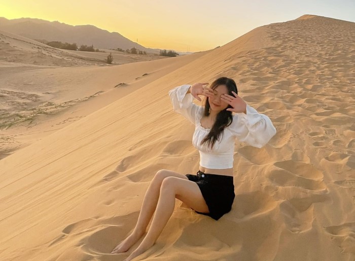 Discovering Tanyoli Sandhills - which is called by the name of the Mongolian steppe in Vietnam. In the sunshine of Ninh Thuan, the sand dunes are reflected like a miniature desert. Coming here, you can experience the adventure and feeling of conquering the sand dunes on off-road vehicles with a miniature desert.