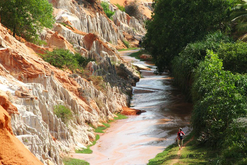 The actual town of Mui Ne occupies a headland at the eastern end of the beach. Besides watersports, one of Mui Ne’s top attractions are the red and white sand dunes that you can see independently on foot, or as part of a jeep tour. The Fairy Stream runs through the dunes, creating red canyon formations that can be explored by wading upstream along the shallow creek.